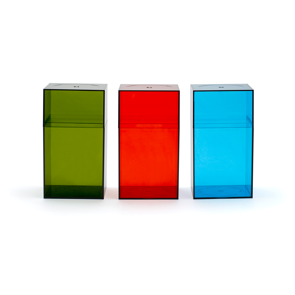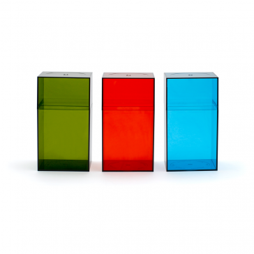 Let your imagination run wild with this assortment of plastic gift boxes, colors and sizes available through AcrylicGiftware.Com and they are all made from a non-BPA, food grade plastic.. The High Top V series measures 3 7/16" Sq. X 6  5/16" tall and includes a tall cap that creates an almost waterproof seal. Use as table toppers or centerpiece without the cap or fill with candy, flowers, stones or other decorative accents or gift wrap with ribbon and a bow. These beautiful gift boxes are truly economical and limitless in use. Sold in bulk for the savings, the boxes can be optionally personalized with corporate identification and logos, for Bar or Bat Mitzvahs, weddings or special events. PRICE DISCOUNTS OFFERED ARE PER ITEM NOT SET.