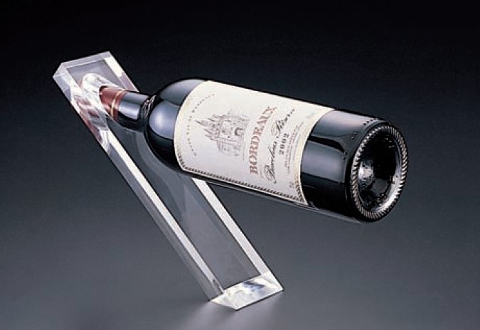 The BALANCING SINGLE WINE BOTTLE HOLDER is an unusal way of displaying your wine and typically for full bottle display. Not to be confused with any pouring device, this is for display only and a balancing act within itself. You'll get comments from everyone so we suggest you put your least expensive wine here because friends and acquentances will all want to touch, feel, move and re-position this free-standing wonder just to see how easy it is to do what it does best.....amaze everyone.