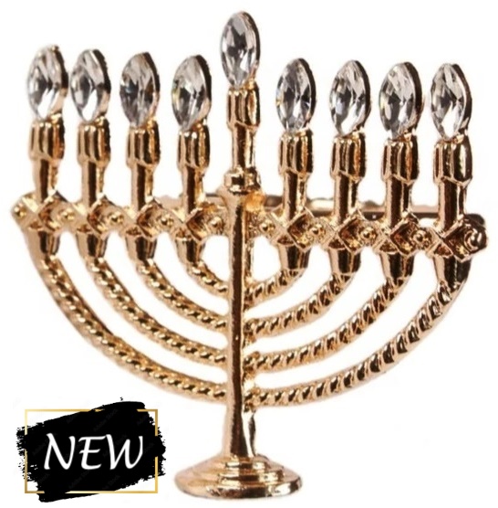 Highly Polished Gold Menorah With Crystal Clear Fl
