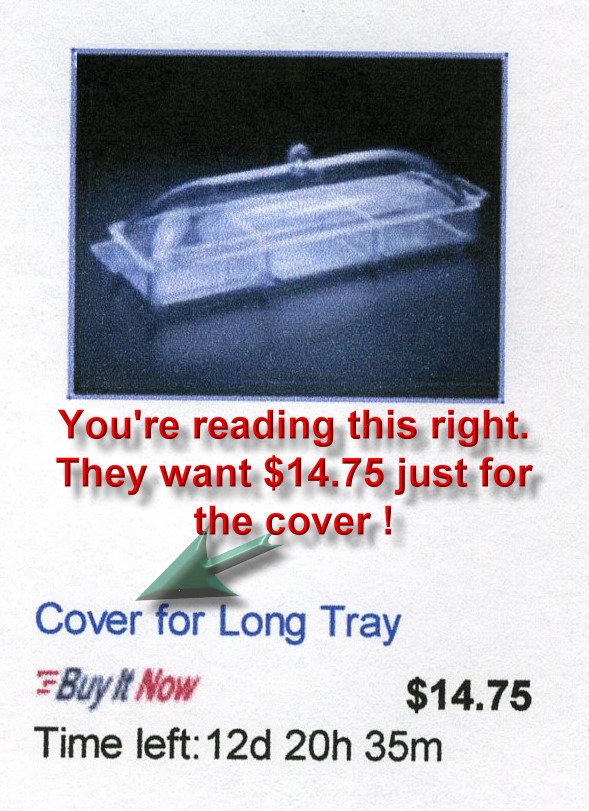 NEW LONG TRAY & DOMED COVER COMBO SET - (THIS IS A SPECIAL ORDER ITEM WITH MINIMUM QUANTITY OF 24 AND CANNOT BE MIXED WITH ANY OTHER ORDER ITEM OFFERED FROM THIS SITE - PLEASE CALL FOR MORE INFORMATION). Our Long Tray & Dome can be used when there is a call for lengthy table items such as carrots, celery, French Bread or any other items in which you need a longer volume of space. The domed lid with easy-to-grip globe style knob provides protection for the entire dish's contents and adds height to form more volume as well. This item is extremely seasonal and may be in high demand during the last quarter and first quarter of each year. Size and dimensions listed to the right do not reflect the entire order's weights and measurements, rather, represent a single item. An order of 24 will be shipped in between 4 to 6 cartons.