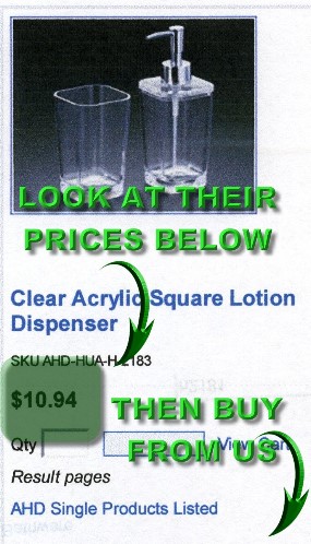 Acrylic Giftware offers products for those looking for a more modern approach to bath and glassware accessories. This Square Lotion Dispenser is designed with tapered flat walls, square rims and radius corners, sleek and clean lines, stainless top and a simple approach to style.