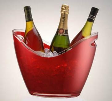 This premier collection wine bucket/chiller offers the height of elegant design and quality. Produced by a special double molded process, they feature a clear outer shell, including thick bottom and rim, complimented with a colorful inner surface. Guests will be duly impressed by the beauty of these wine servers, whether it be a formal indoor settling or casual outdoor entertaining.This durable acrylic cooler has built-in easy-to-carry handles and holds up to 4 bottles deprnding upon individual bottle sizes (not magnum). Chiller outside measurement sizes are13 ¾"L x 10 ½"W x 10"H.